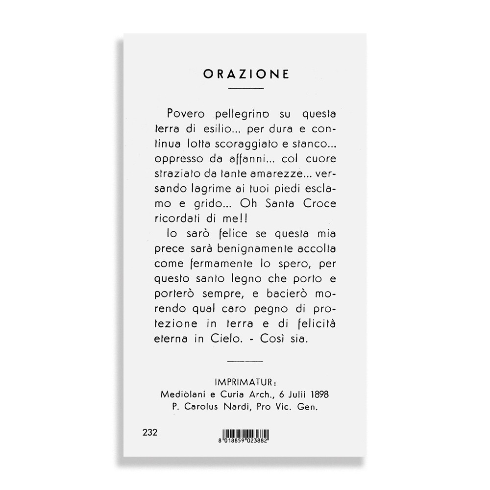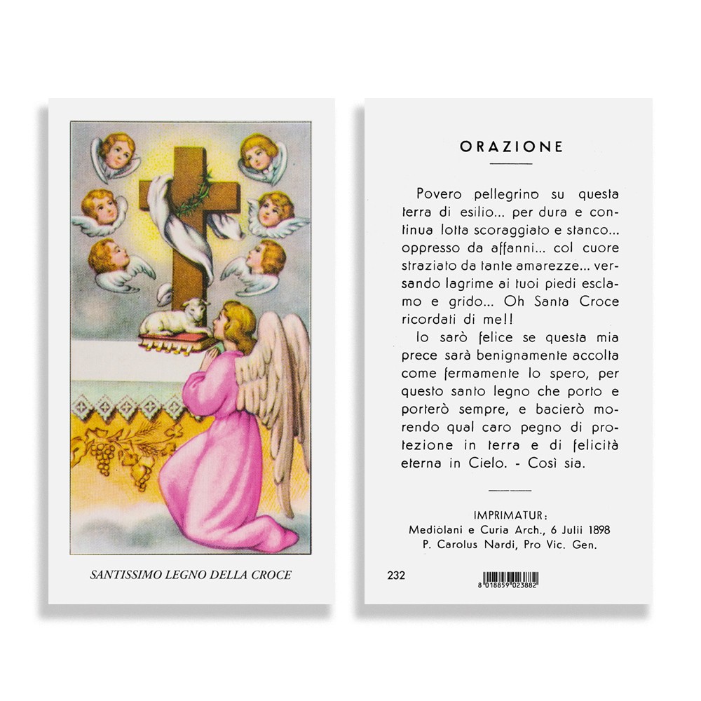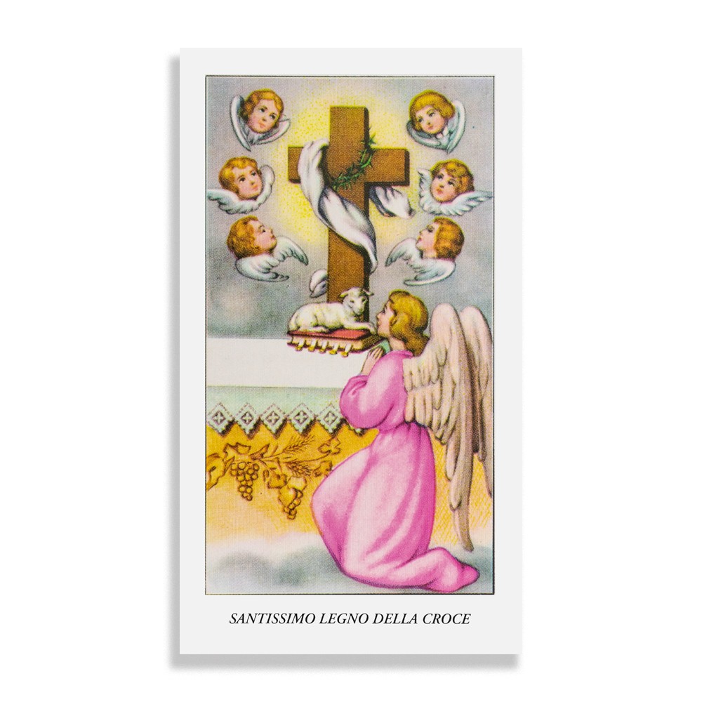 Immaginetta Santissimo Legno della Croce con orazione sul retro - Confezione 100 immaginette.