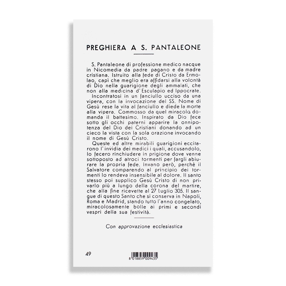 Immaginetta di San Pantaleone Martire, formato 10,5 x 6 cm.