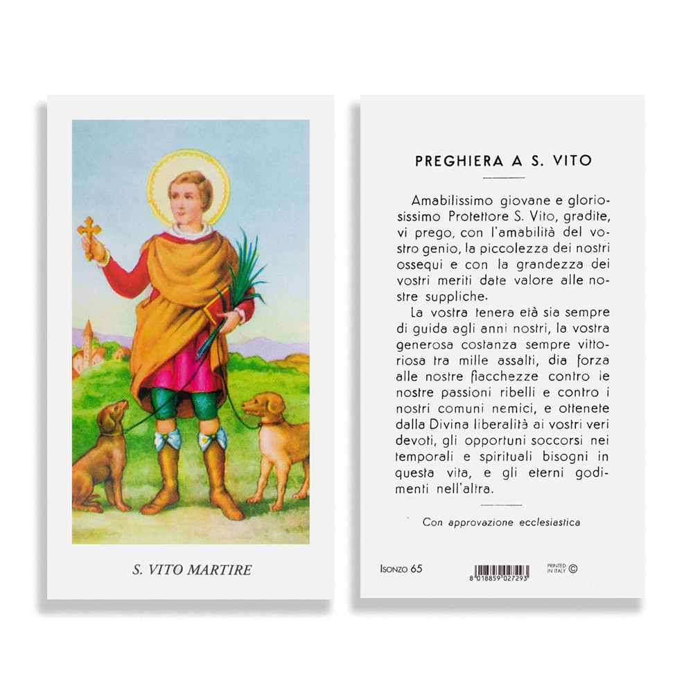 Santini religiosi con immagine e preghiera di San Vito Martire.