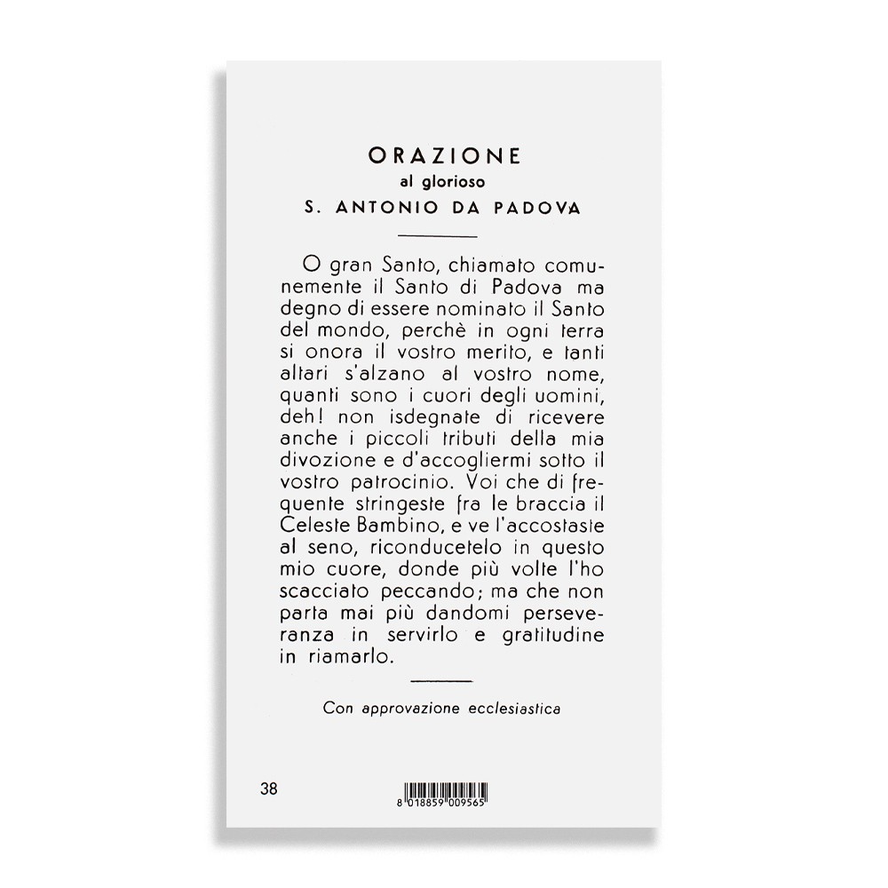 Su ogni immaginetta vi è stampata l'orazione al glorioso S. Antonio da Padova.