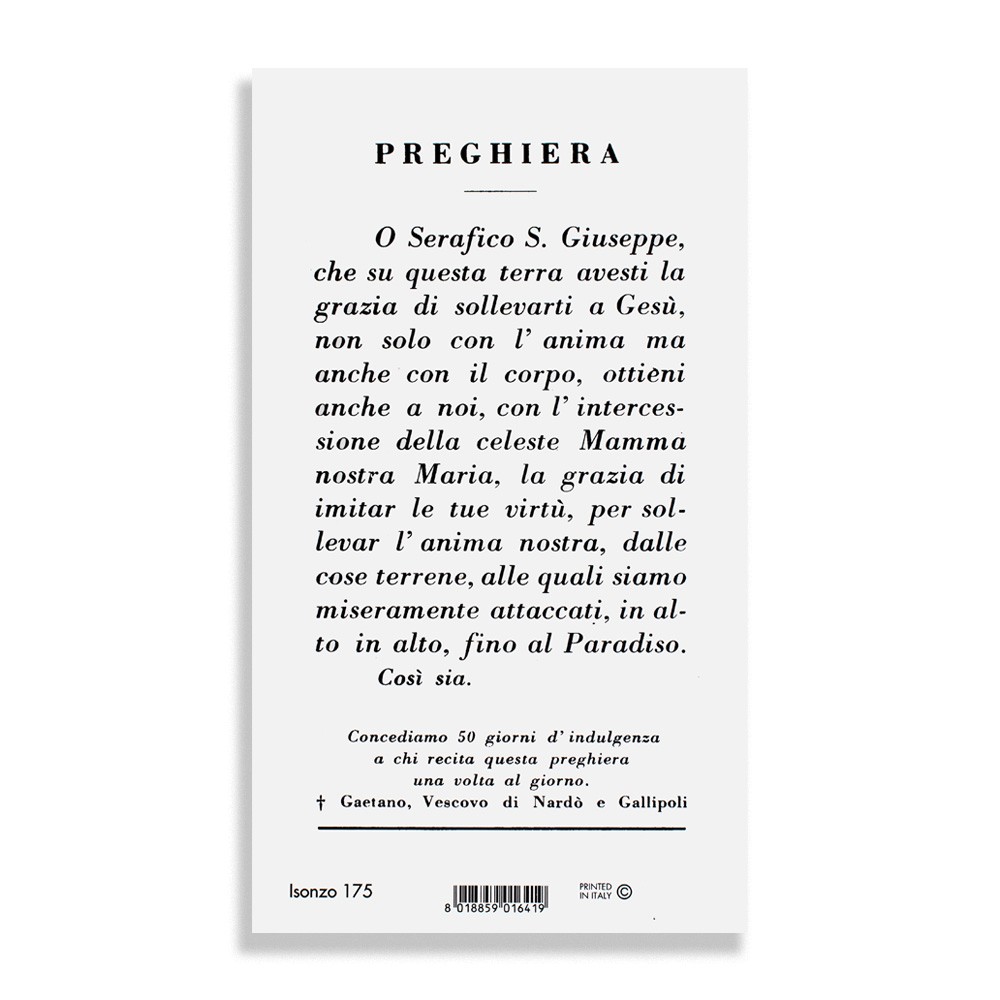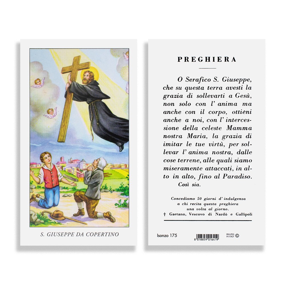Santino religioso con preghiera dedicata a San Giuseppe Copertino.