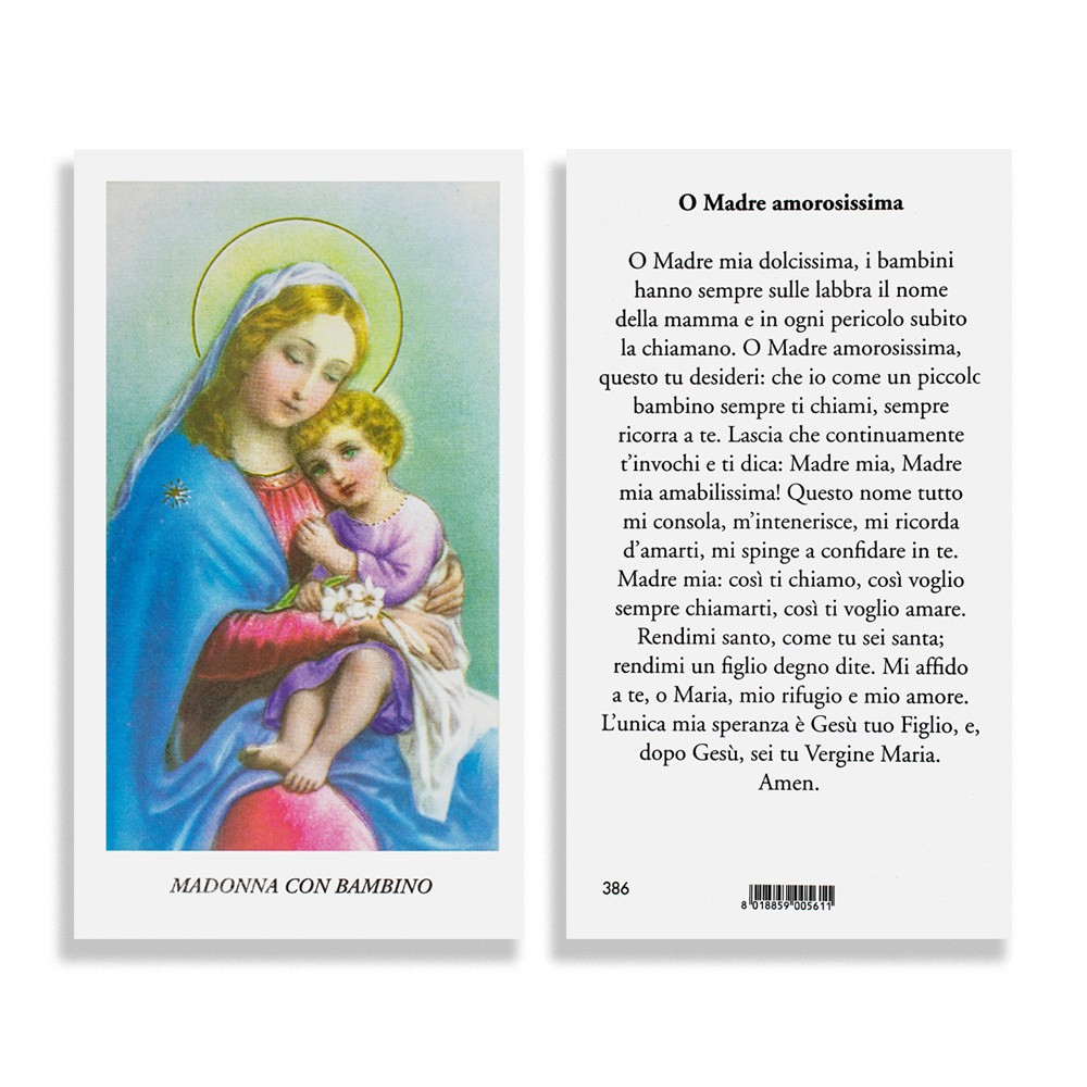 Immaginetta religiosa raffigurante una Madonna con Bambino in confezione da 100 pezzi.