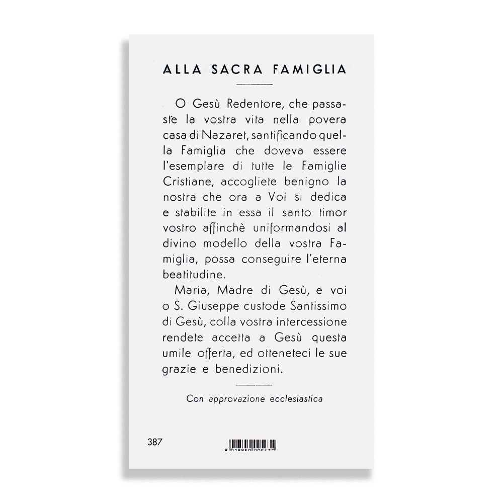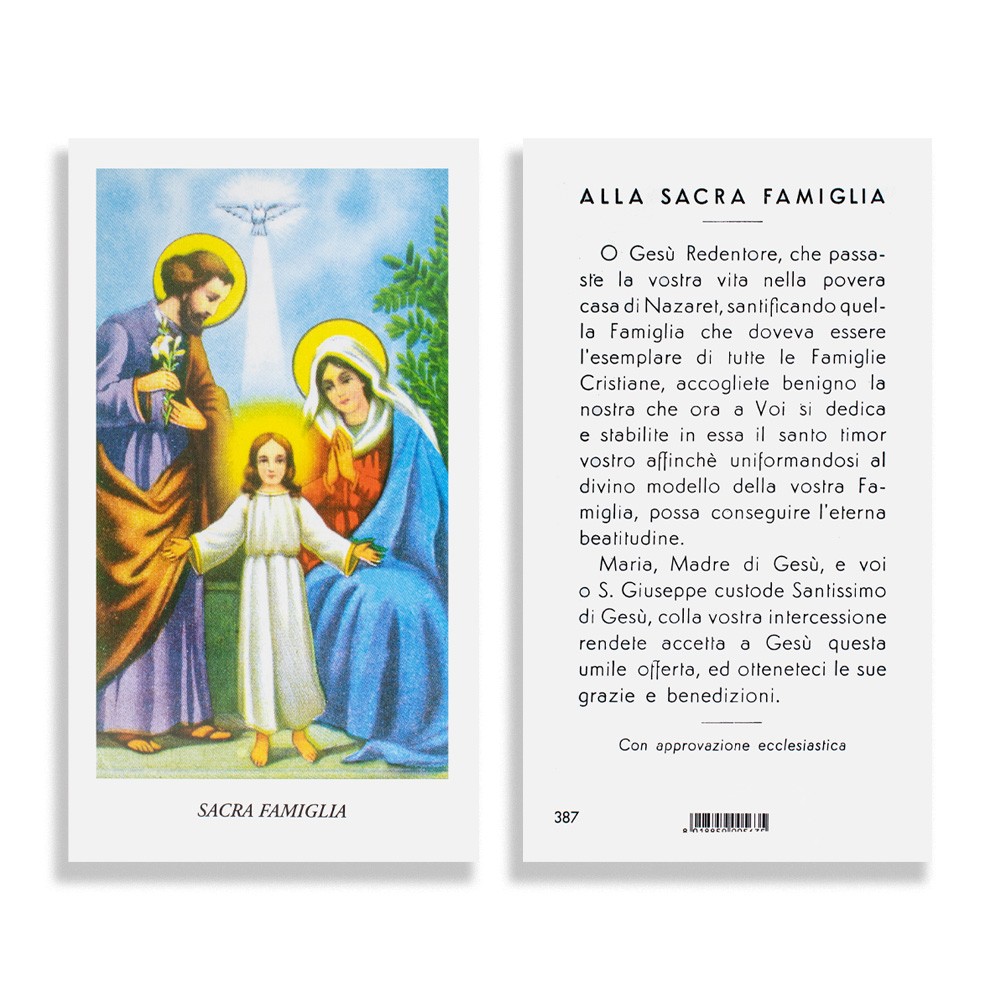 Santini con immagine e preghiera dedicata alla Famiglia.