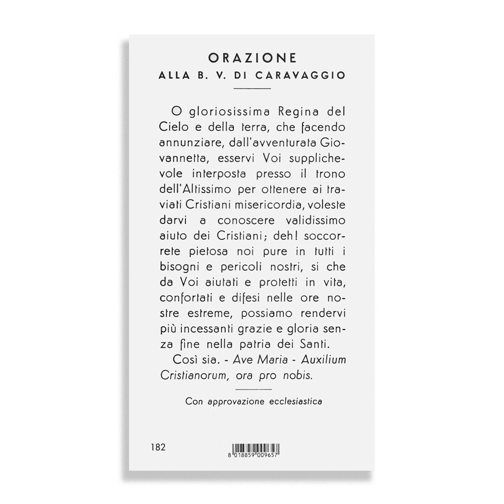 Immaginetta sacra Madonna di Caravaggio, formato 10,5x6 cm.