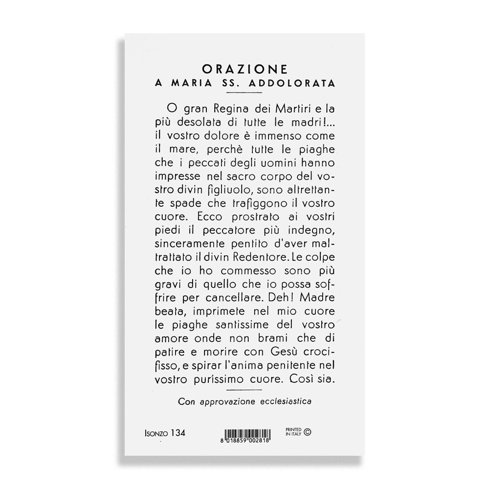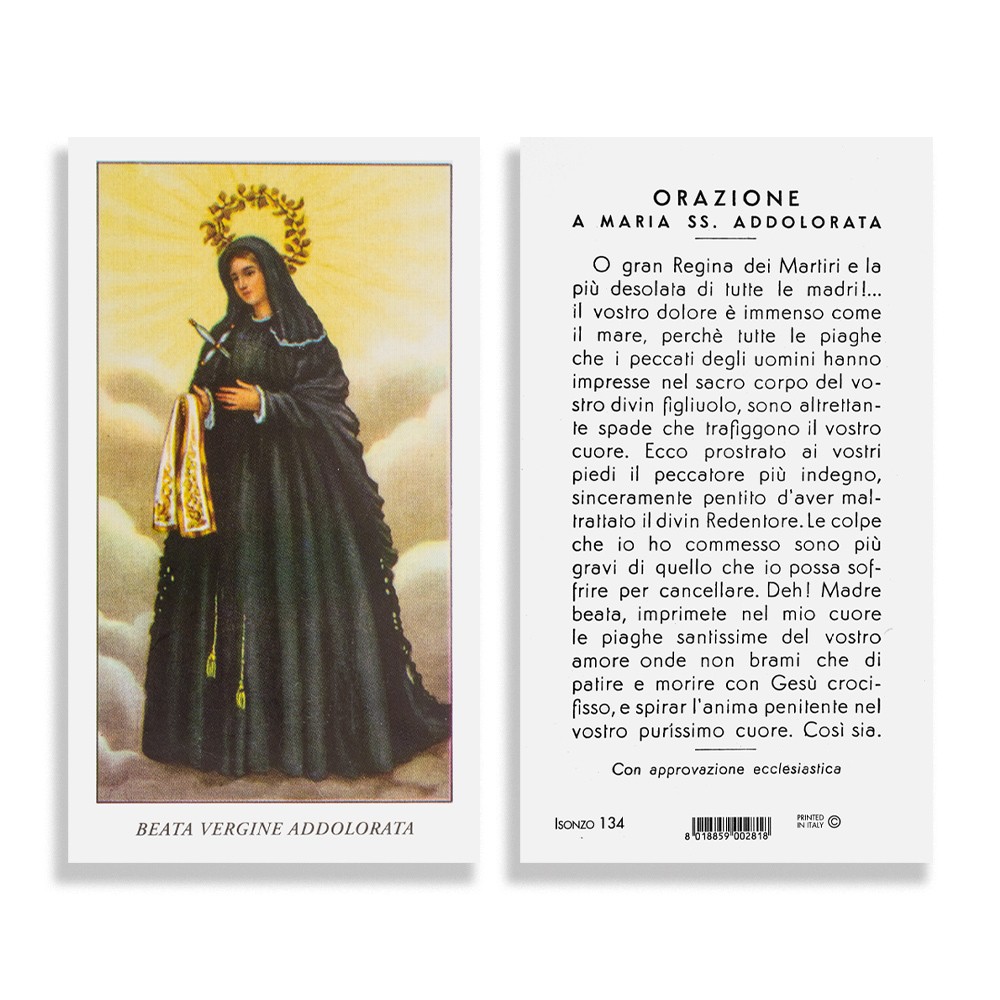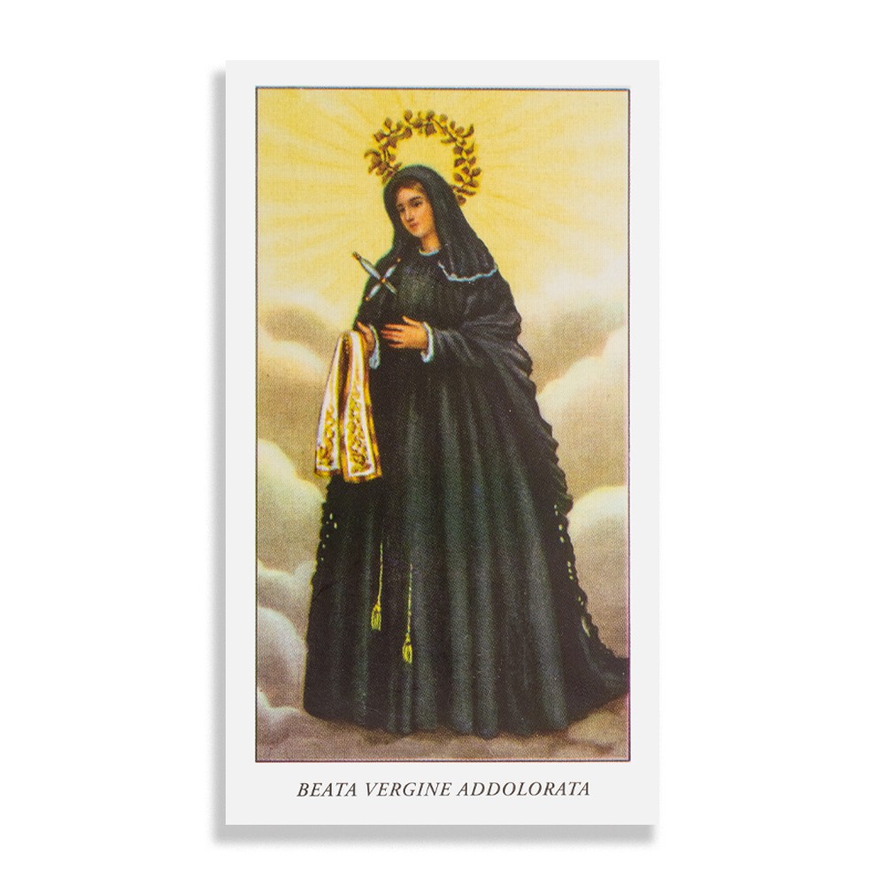 Santino con immaginetta della Beata Vergine Addolorata in confezione da 100 pezzi.
