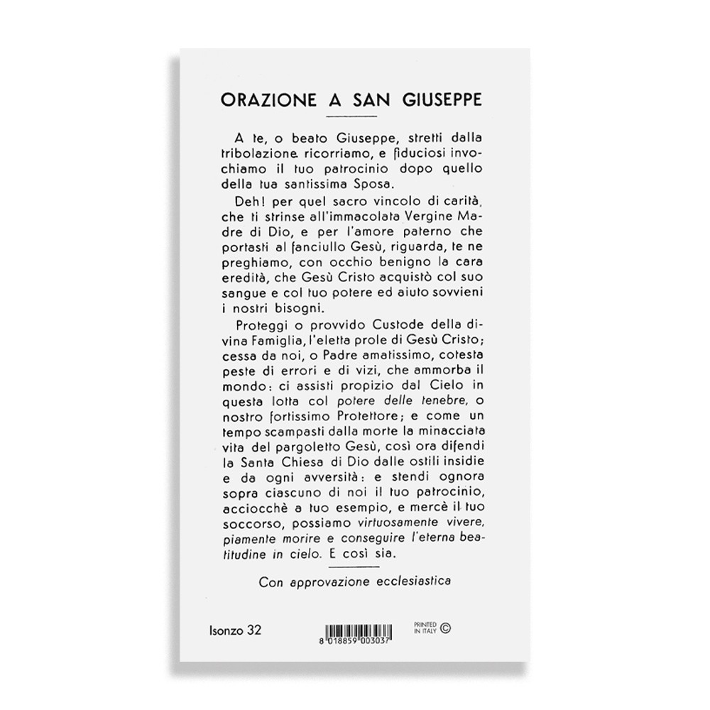 Immaginette con orazione dedicata a San Giuseppe, vendibile in confezione da100 pezzi.