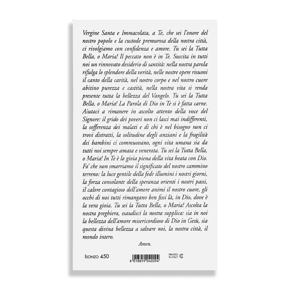 Santino religioso con preghiera dedicata aalla Madonna Immacolata Concezione.- Vendibile in confezione da 100 immaginette.
