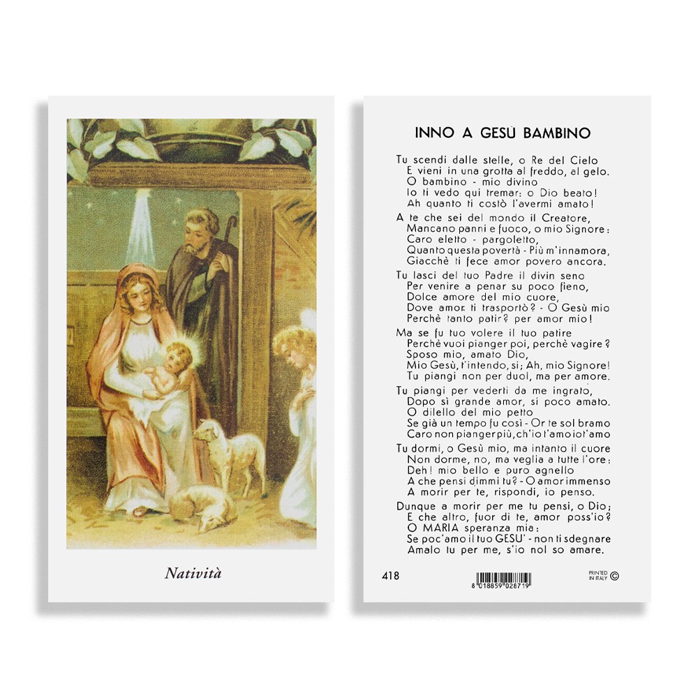Immaginetta Natività con Inno a Gesù Bambino - Confezione da 100 pezzi.