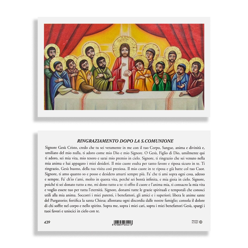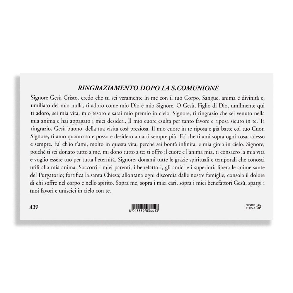 Su ogni immaginetta vi è stampata la preghiera di ringraziamento dopo la Santa Comunione.