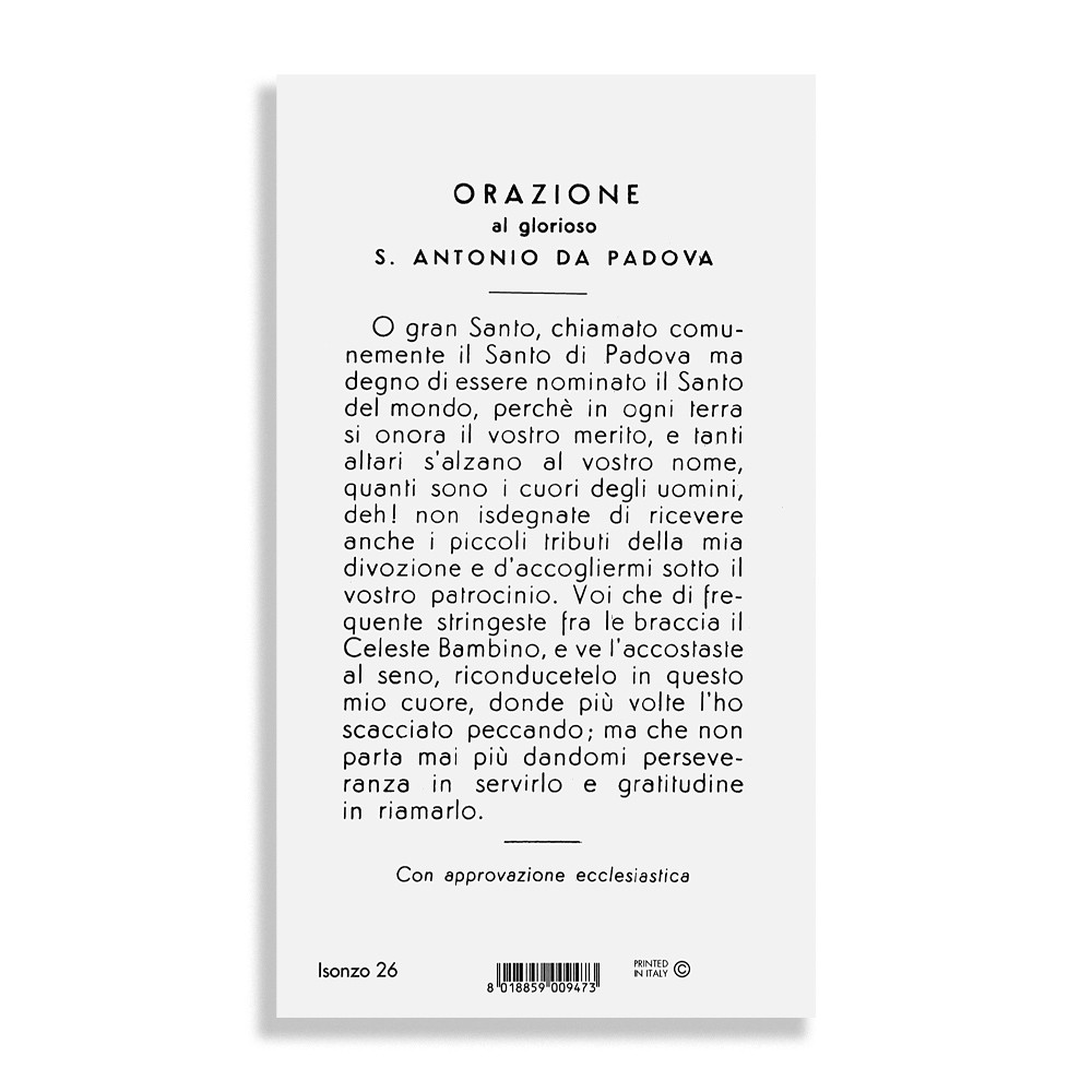 Santini religiosi con preghiera rivolta a Sant'Antonio da Padova.