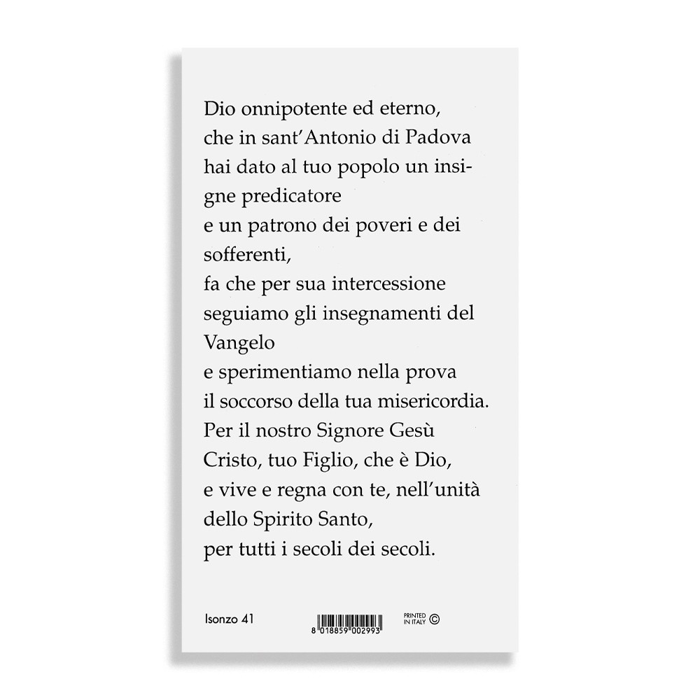 Santini con preghiera dedicata a Sant'Antonio da Padova.