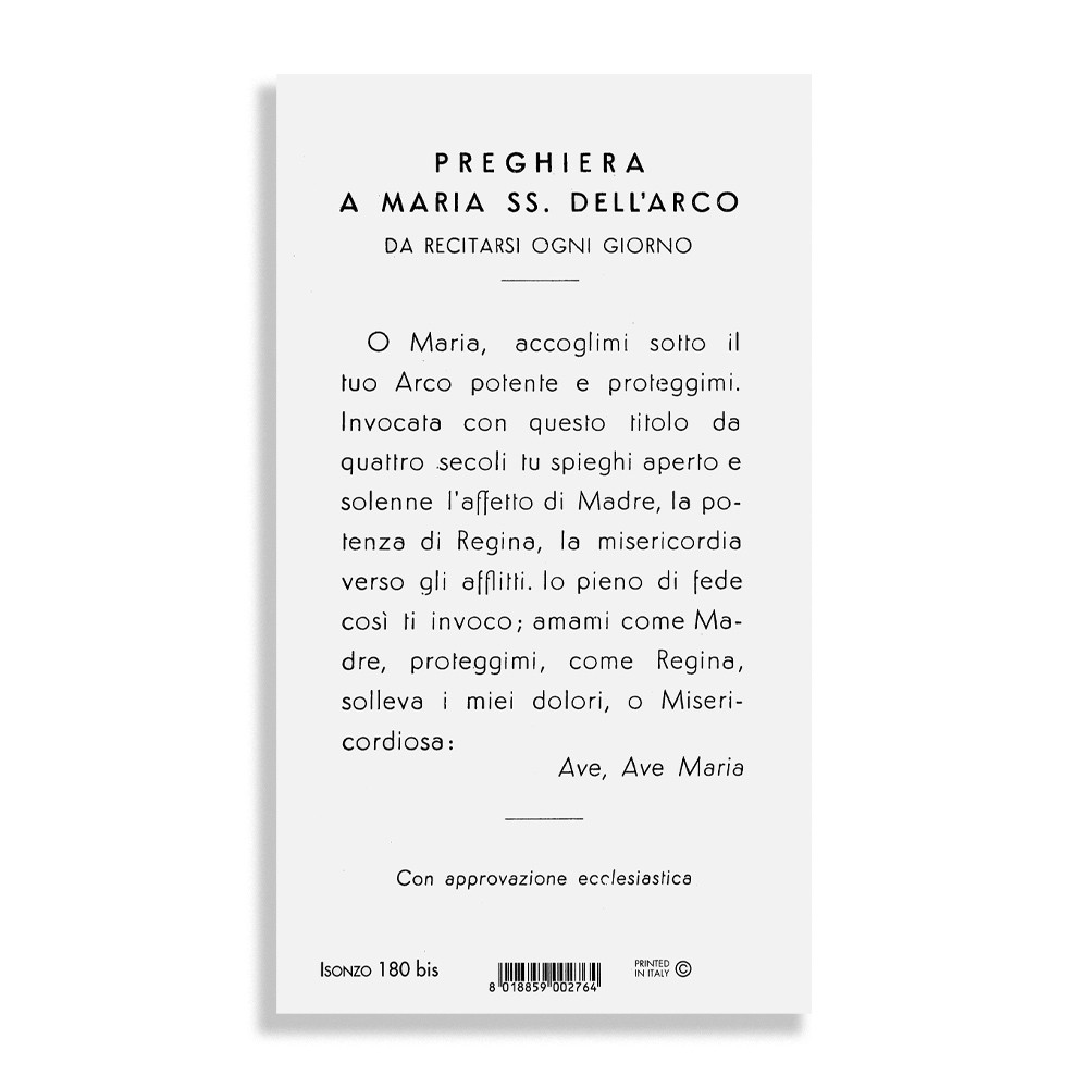 Immaginetta di Maria Santissima dell'Arco con preghiera stampata sul retro da recitare ogni giorno.