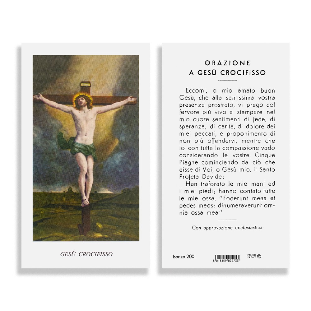 L'offerta comprende una confezione da 100 immaginette raffiguranti Gesù Crocifisso e sul retro vi è stampata l'orazione.