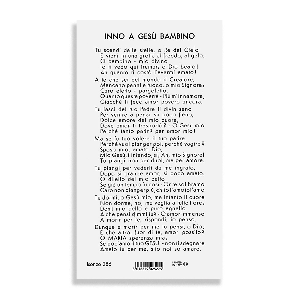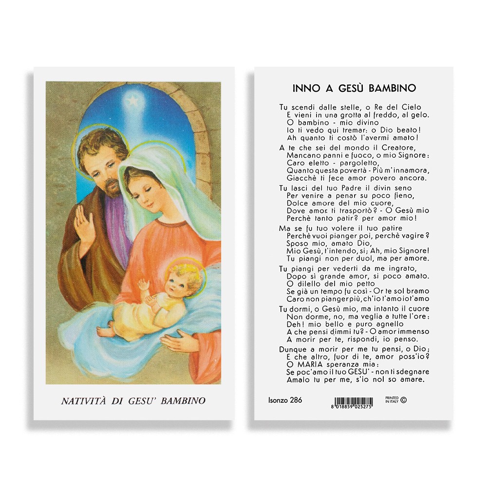 In confezione da 100 immaginette con immagine e Inno a Gesù Bambino.