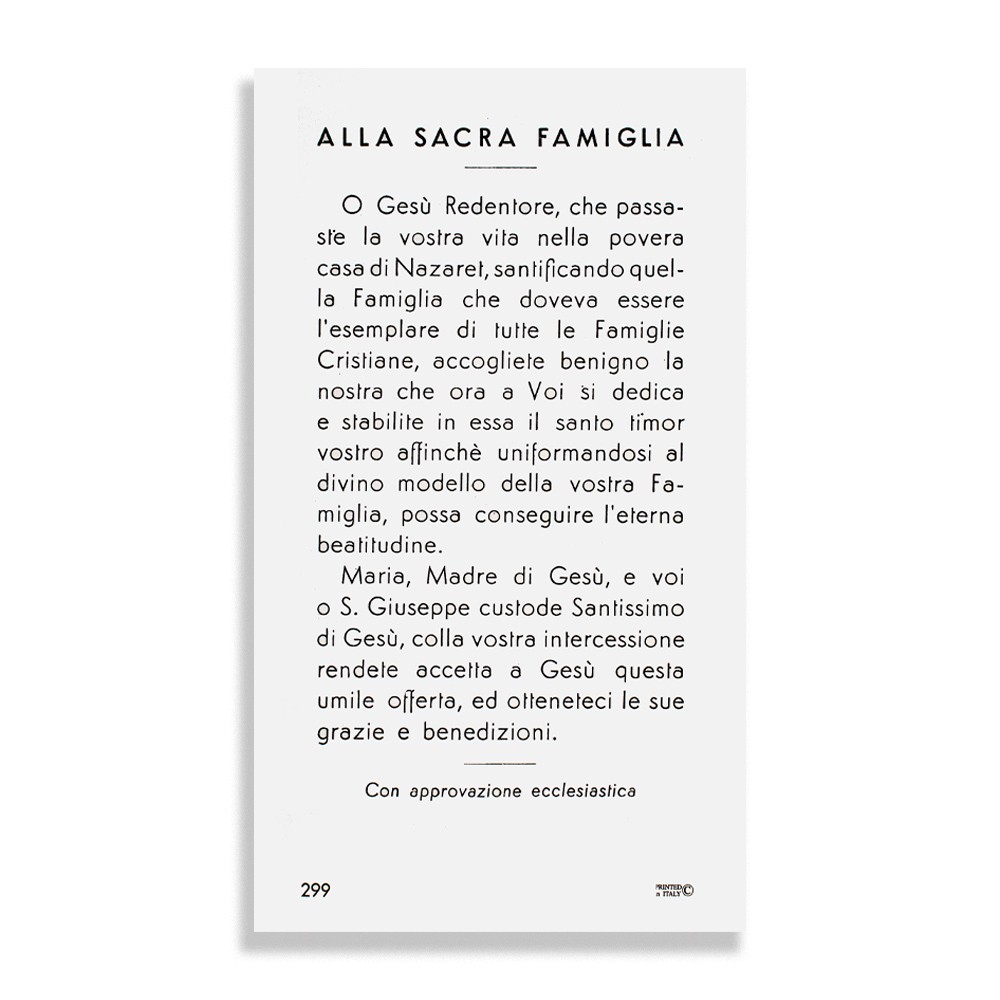 Santino con Preghiera Sacra Famiglia