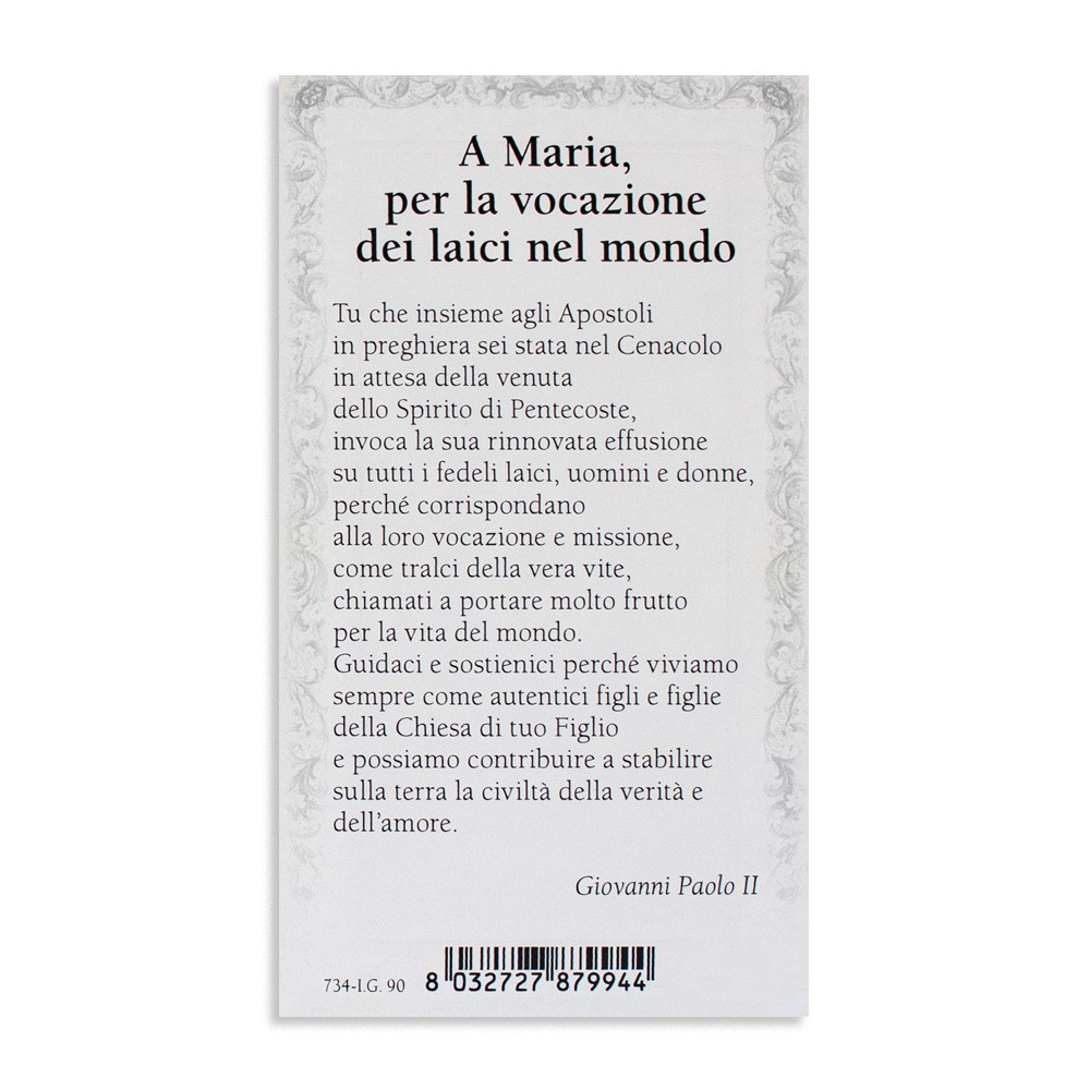 Sul retro vi è stampata la preghiera a Maria, per la vocazione dei laici nel mondo.