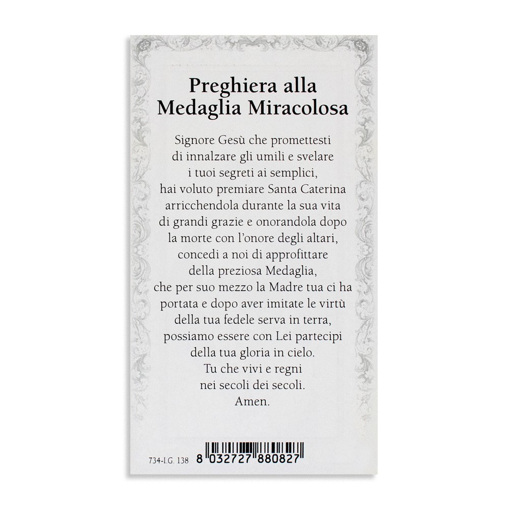 Santino di Santa Caterina di Labourè con immagine e preghiera rivolta alla Madre di bontà, d'amore e di Misericordia.