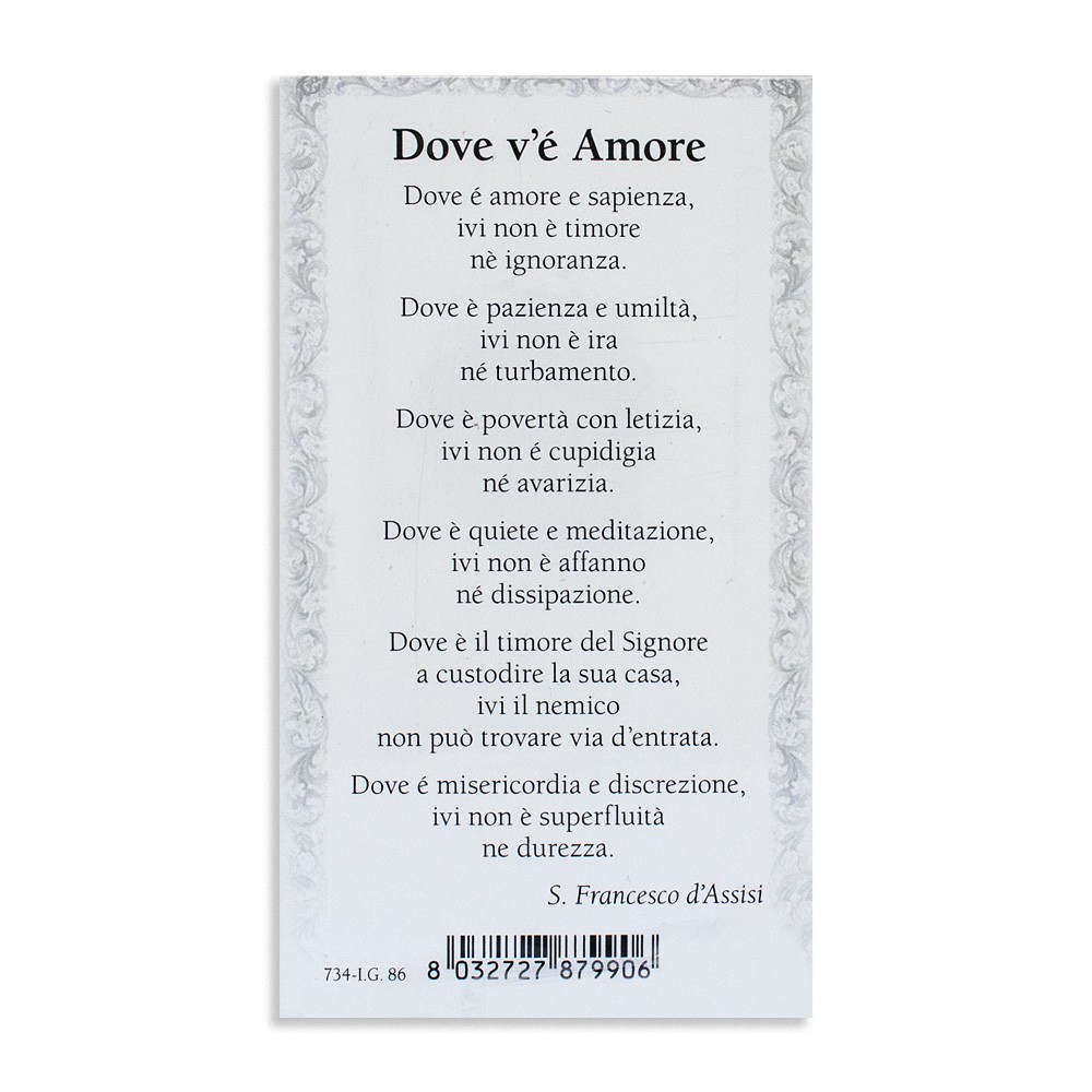 Sul retro è stampata la preghiera Dove v'è Amore.