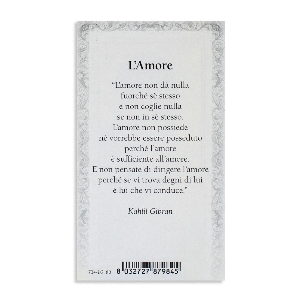 Fornito in confezione da 100 santini con cornice e dettagli in oro a caldo.