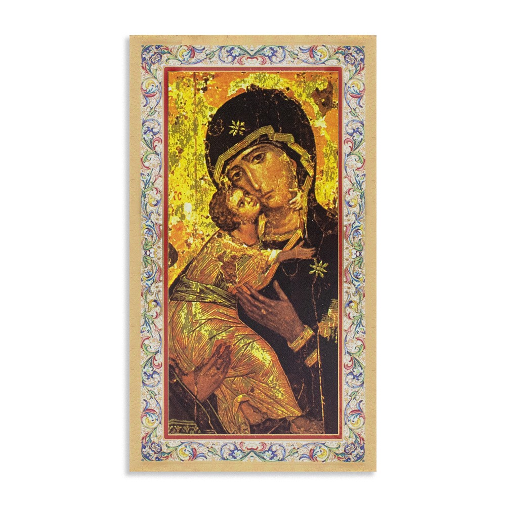 In confezione da 100 immaginette decorate con cornice e preghiera.