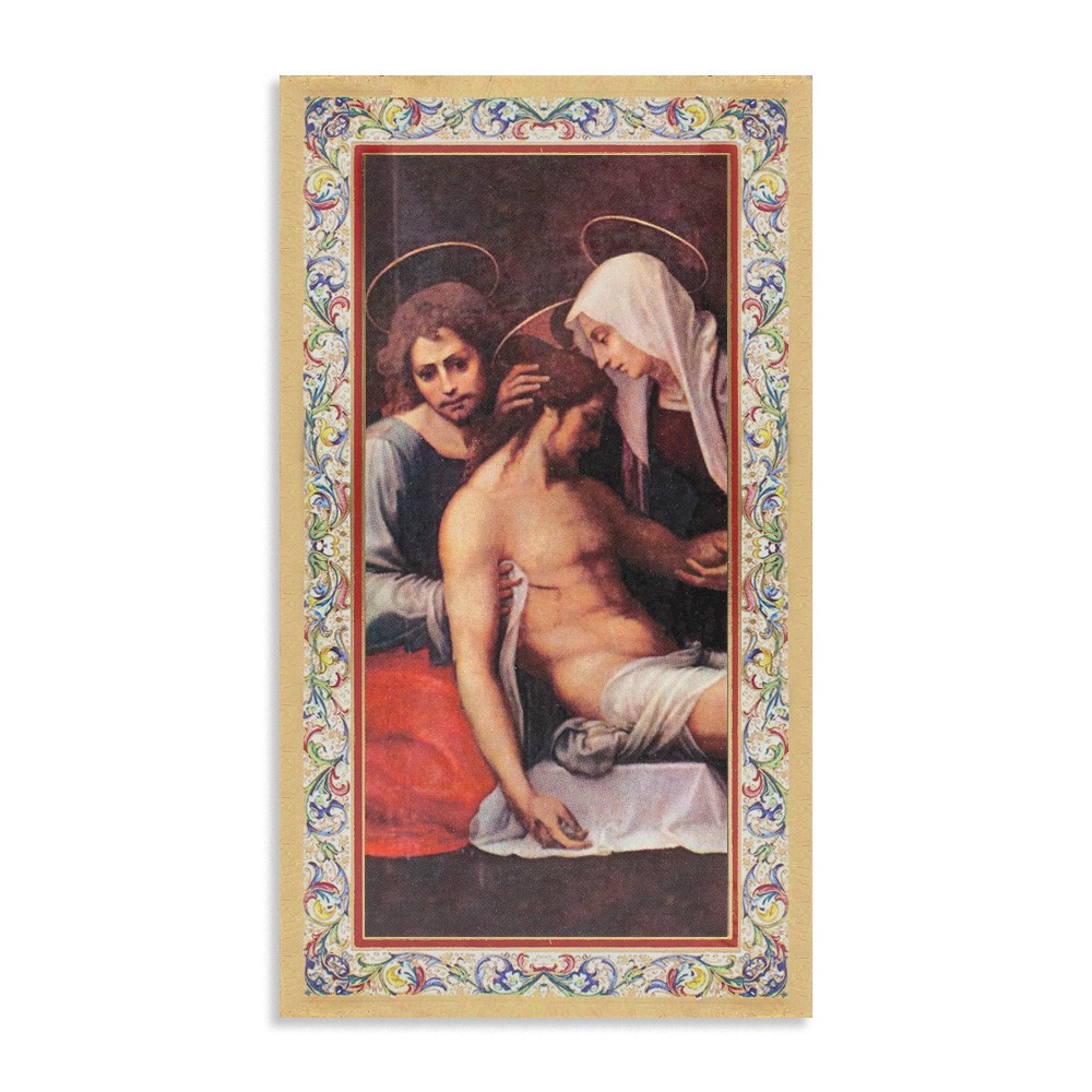 Immaginetta religiosa che riproduce la deposizione dalla croce, in confezione da 100 santini.