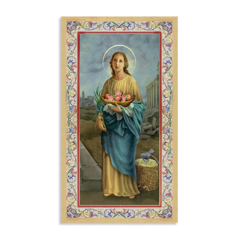 Santini di Santa Dorotea con immagine e preghiera rivolta alla Santa.