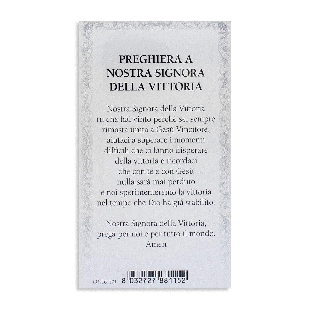 Santino con immagine e preghiera rivolta a Nostra Signora della Vittoria in confezione da 100 pezzi.
