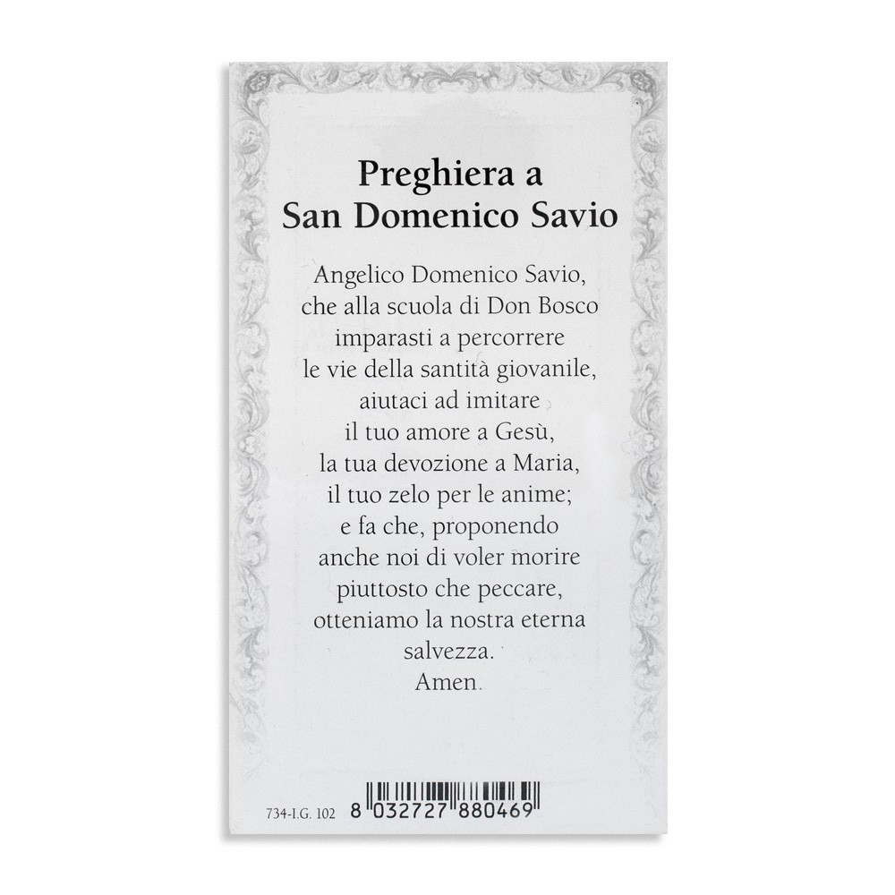 Santini con immagine e preghiera rivolta a San Domenico Savio. Confezione da 100 pezzi.