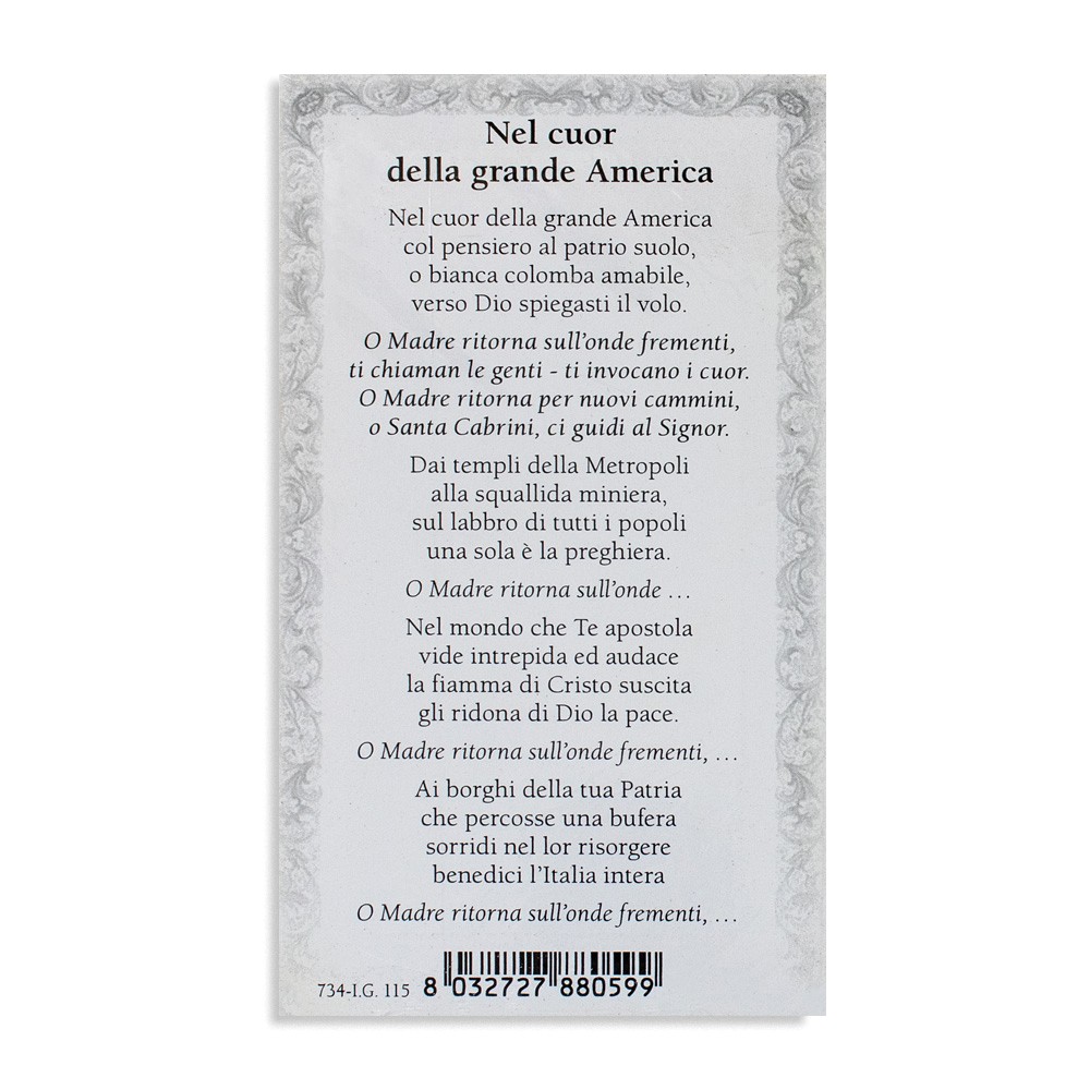 Santino di Santa Francesca Cabrini in confezione da 100 santini.