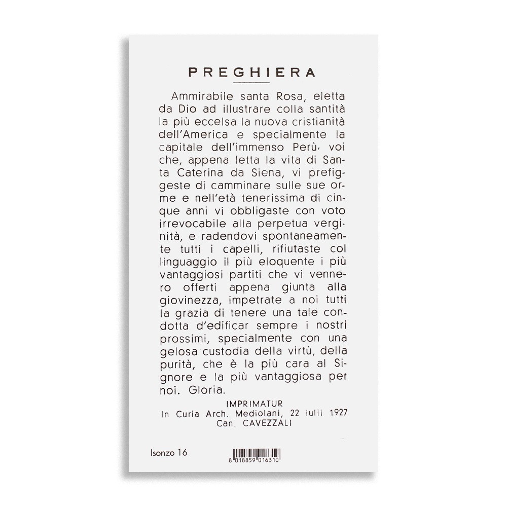 Santini di Santa Rosa da Lima, formato 6 x 10,5 cm.