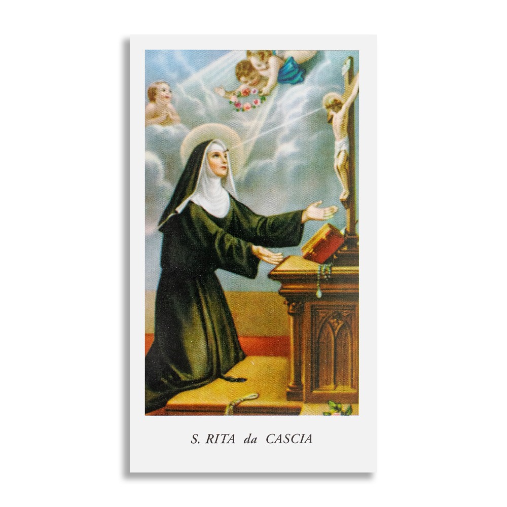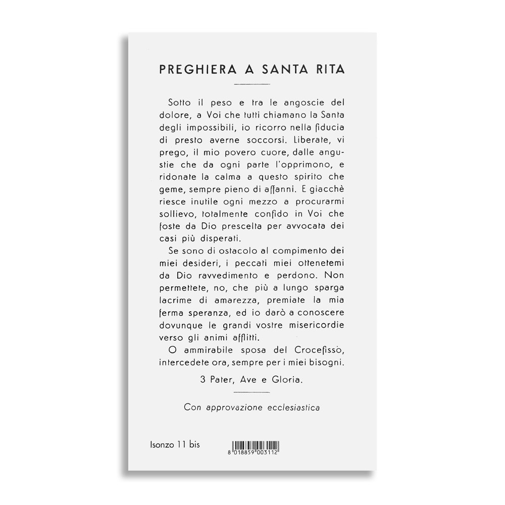 Vendibile in confezione da 100 santini dal formato 10,5 X 6 cm.