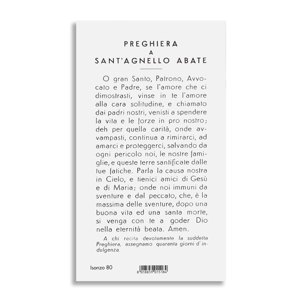 Santino con preghiera e immagine raffigurata di Sant'Agnello - Vendibile in confezione da 100 immaginette.