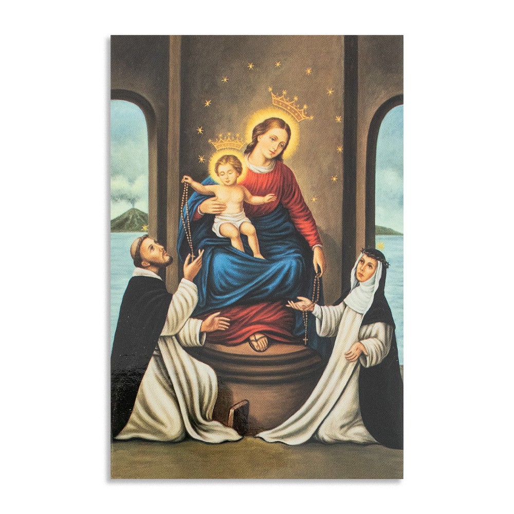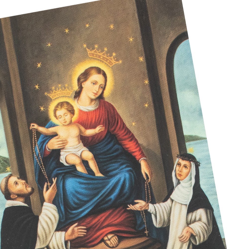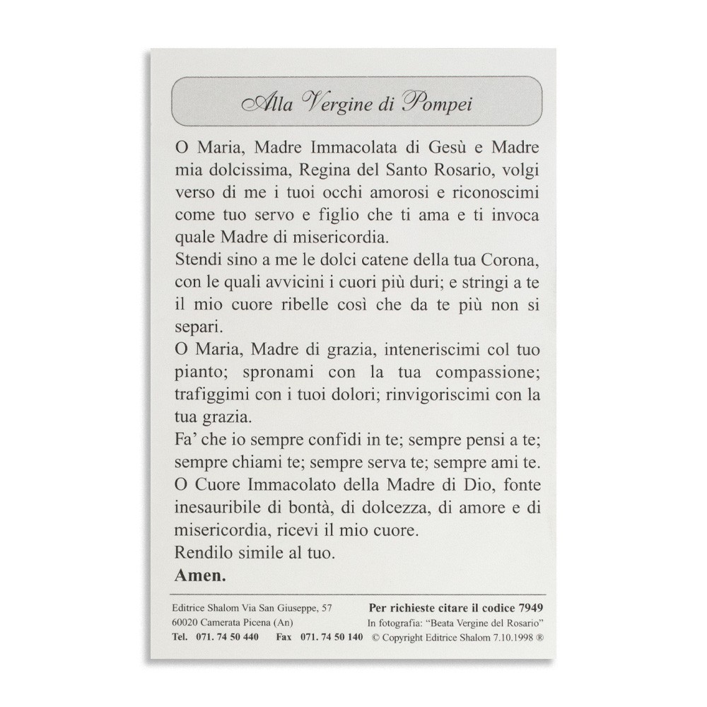 Santino con preghiera dedicato alla Madonna di Pompei, formato 7x10,5 cm.