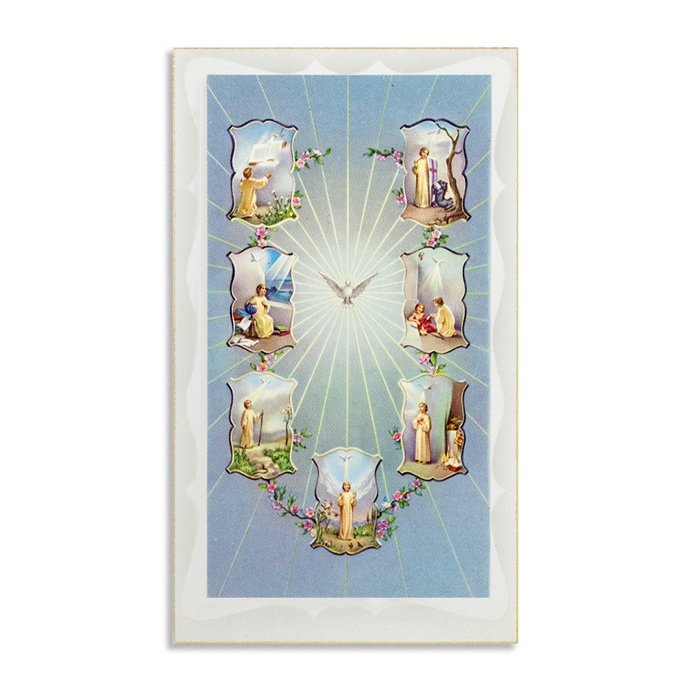 Fornito in confezione da 100 santini con cornice e dettagli in oro a caldo.