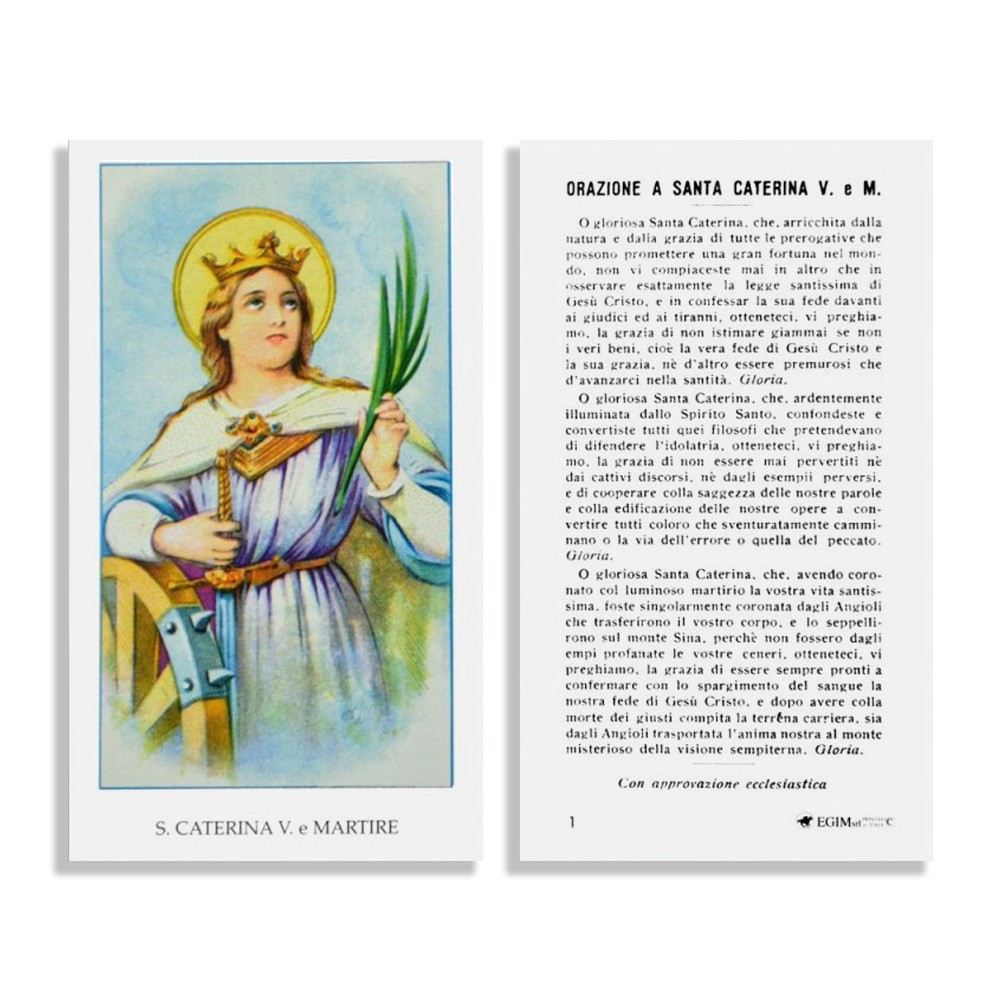Santino S. Caterina V. e Martire con orazione sul retro.