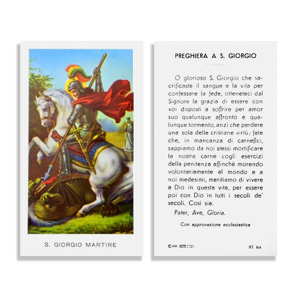 Santino S. Giorgio Martire con preghiera sul retro. Misure 10,5 x 6 cm.