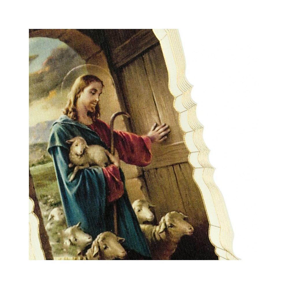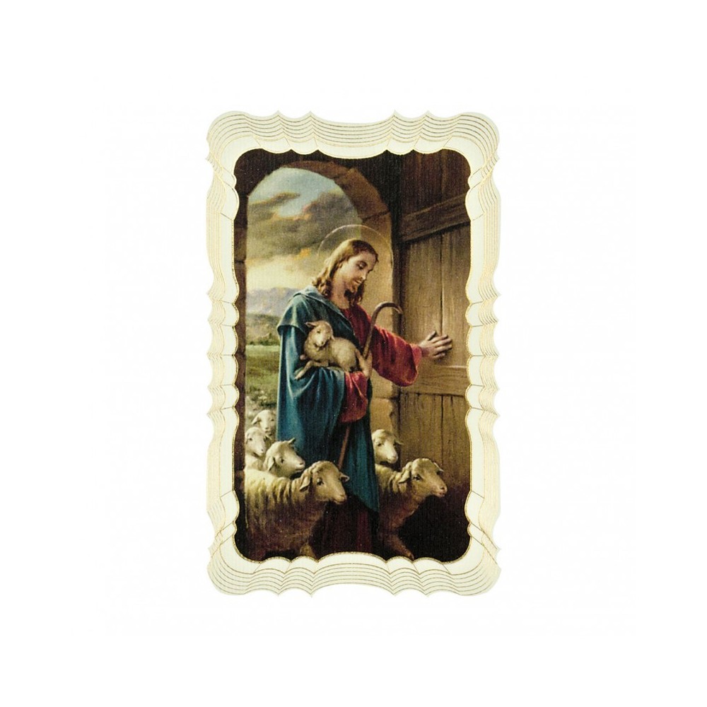 L'immaginetta, che riproduce Gesù Buon Pastore, si presenta stampata su cartoncino con bordi decorati in oro a caldo. Il pacchetto include 50 immaginette formato 10,5x6,5 cm.