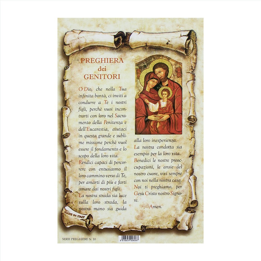 Cartolina Preghiera dei Genitori in confezione.