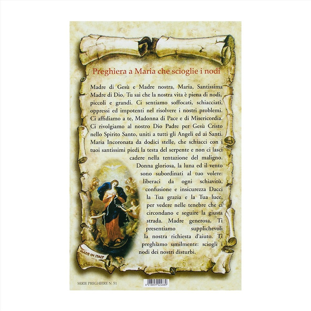 Cartolina con Preghiera a Maria che Scioglie i Nodi.