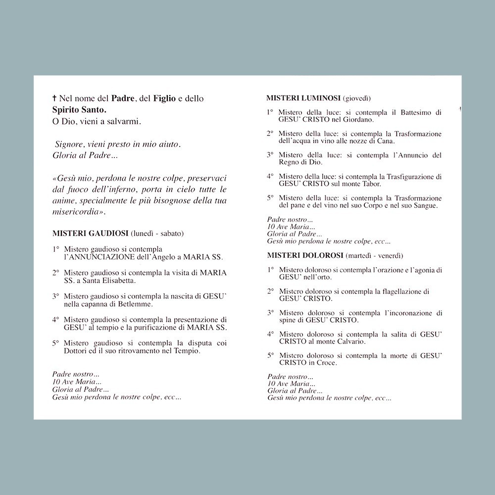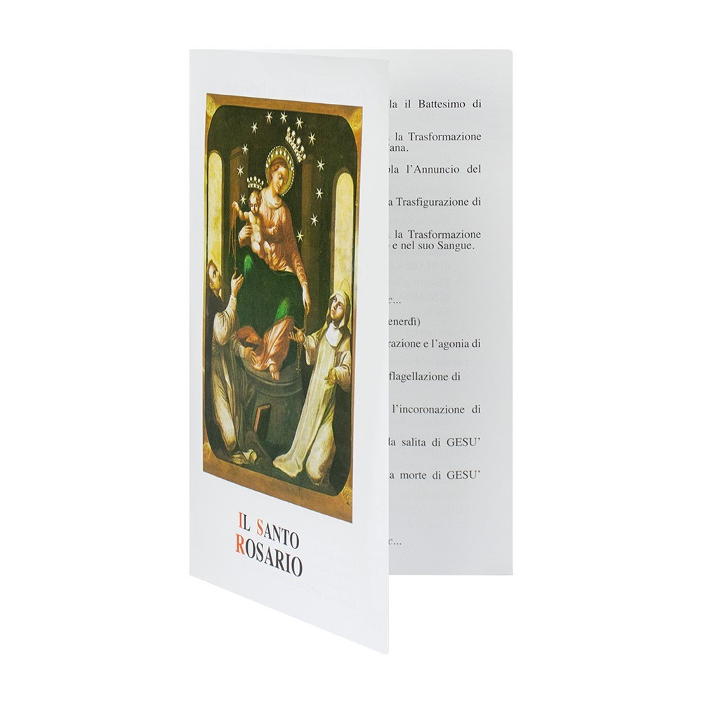 Il Santo Rosario immaginetta pieghevole. La confezione è completa di 100 immaginette.