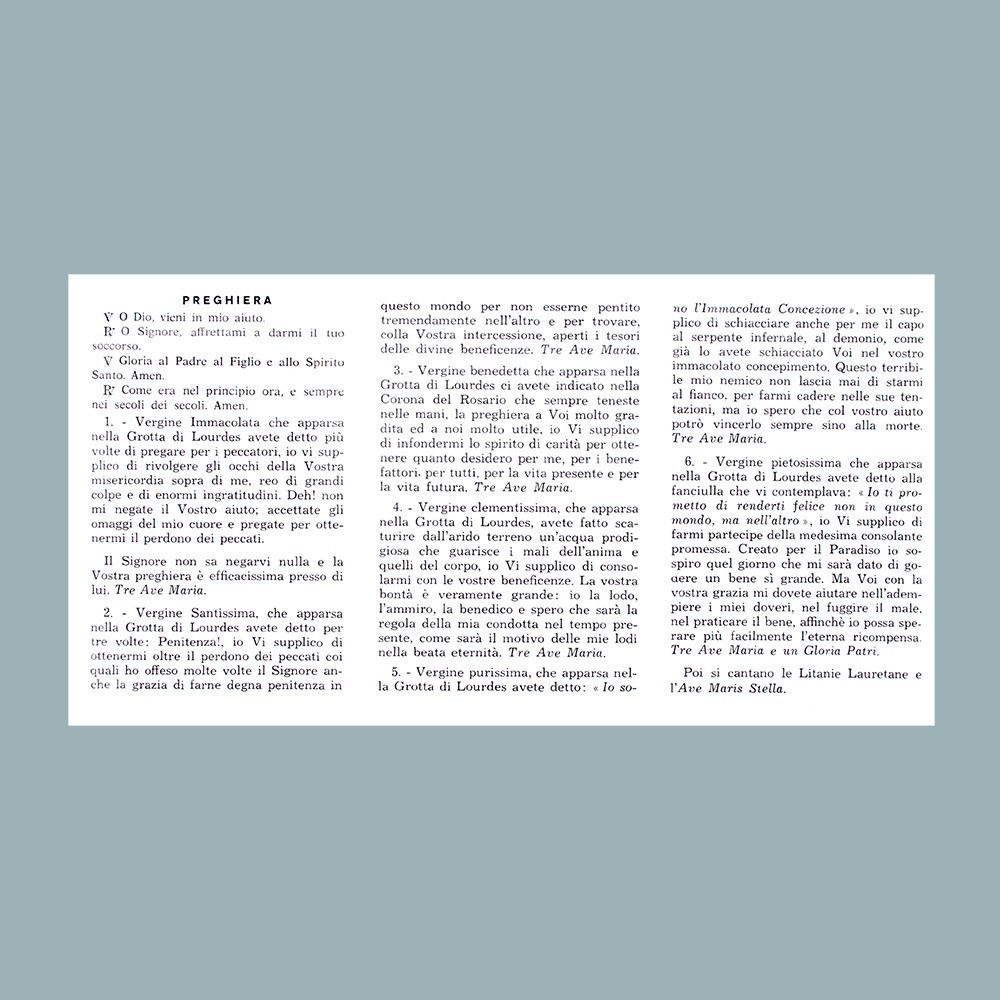Pagellina con Novena e preghiere Madonna di Lourdes.
