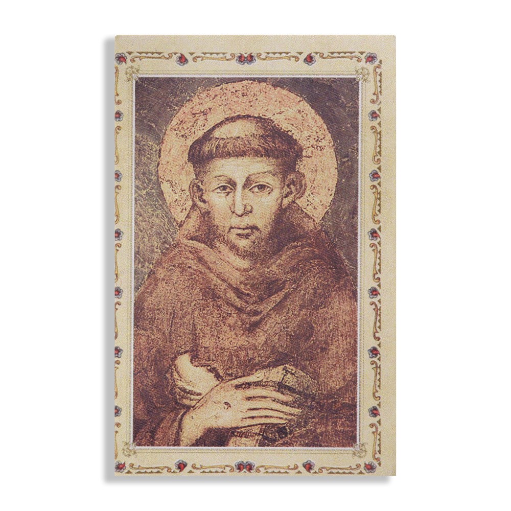 Realizzato in tessuto marrone con immagine a colori di San Francesco.