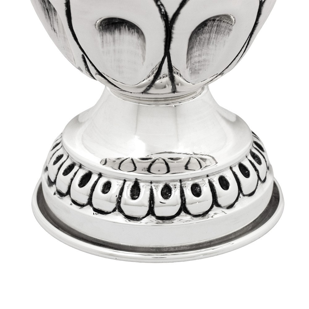 Realizzato in ottone tono argento cesellato a mano.