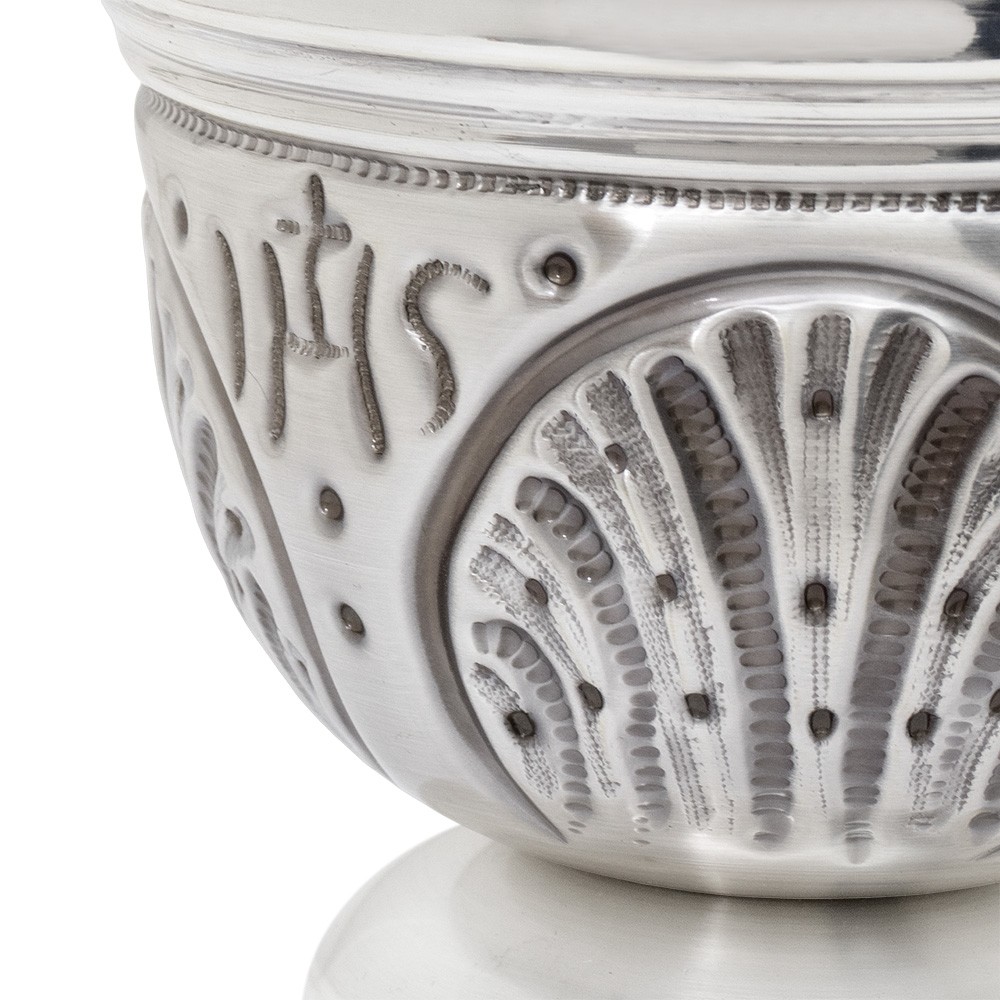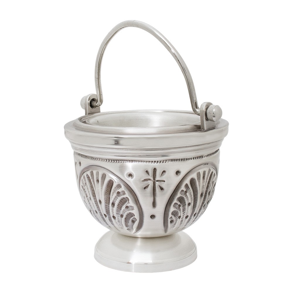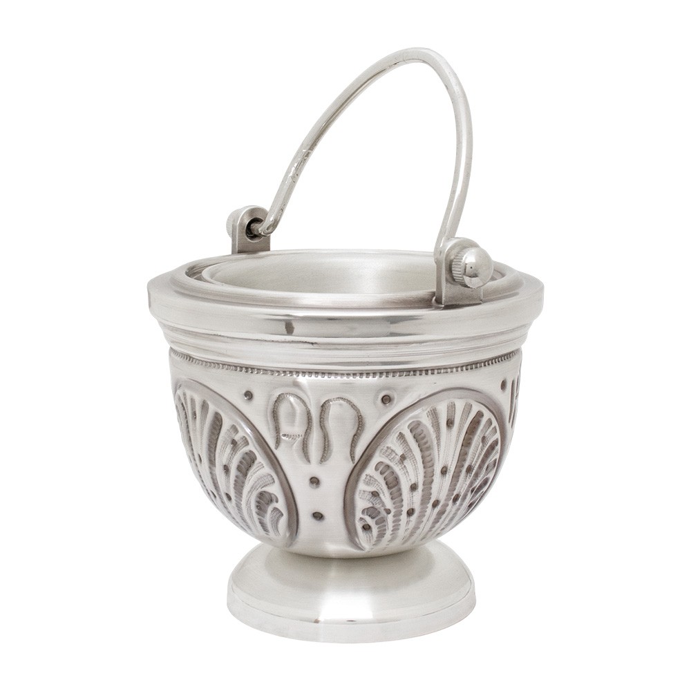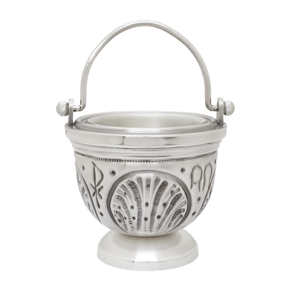 Pregiato secchiello liturgico realizzato in ottone argentato cesellato a mano.