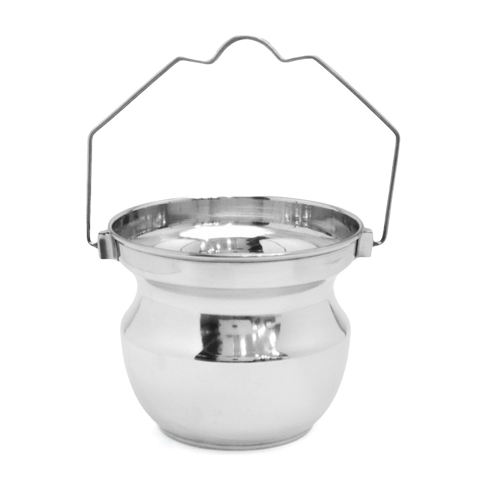 Secchiello con manico per acqua santa realizzato in acciaio inox. Prodotto made in Italy.