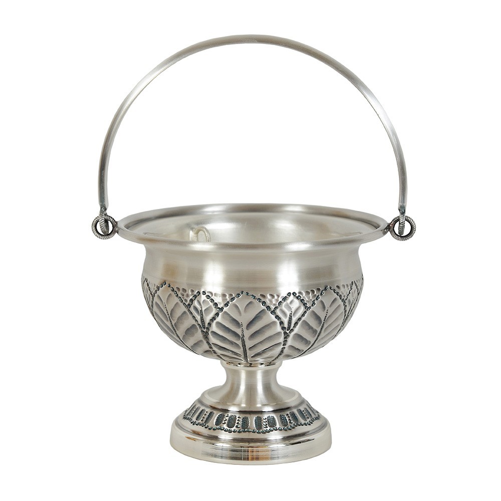 Secchiello per acqua benedetta in ottone argento cesellato a mano. Completo di un comodo manico. Artcolo di ottima fattura eseguito interamente da un'azienda italiana.