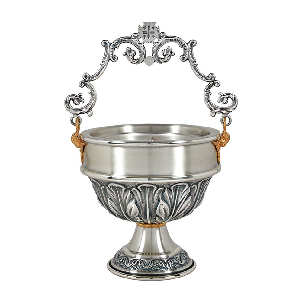 Secchiello per benedizioni cesellato finemnete a mano. Realizzato in ottone argento. Articolo di ottima qualità, 100% italiano.