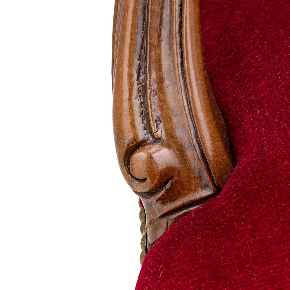 Realizzata in pregiato legno color noce e imbottitura in velluto rosso.