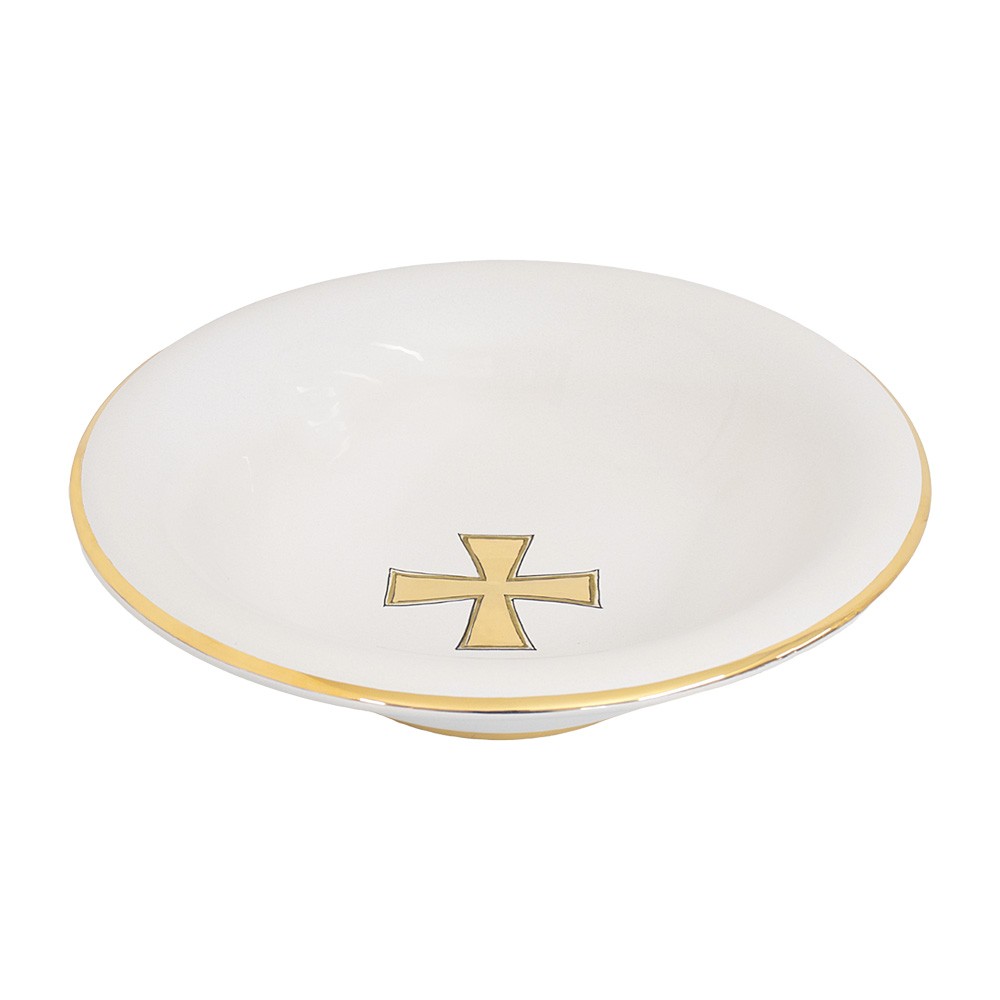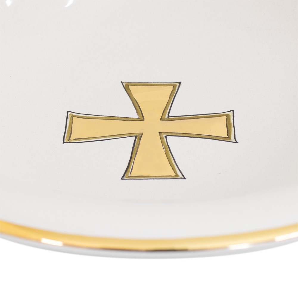 Piatto in ceramica per brocca liturgica, dipinto finemente a mano.