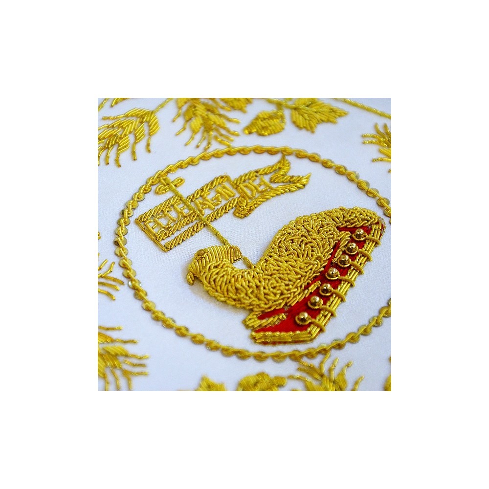 Palla d'altare simbolo "AGNELLO" in puro lino ricamata interamente a mano con oro fino a rilievo, realizzata da maestre ricamatrici.